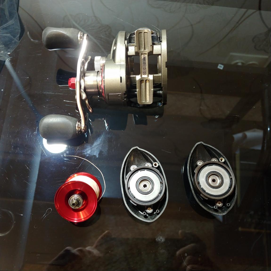 Катушка б-у,состояние отличное.Ни единой коцки или царапины,сделано ТО смазками ZPI.Установлен поющий фрикцион+керамические шары,родное прилагается.Плюс в комплекте идет дополнительно почти новая щека от Abu Garcia Revo ALT и дополнительная обойма з грузиками на шпулю.