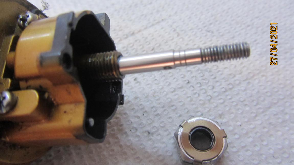 Не хватает втулочки, вставочки между штоком и гайкой зажима ротора, точнее между подшипников в гайке и штоком.