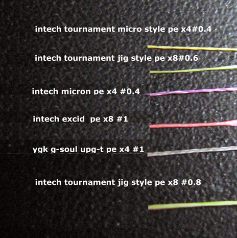 (У меня есть X4 #0.4 - по тесту из гугла держит 6+ кг, внешне толще, чем #0.6 турнамент jig style #0.6). попробовал сфоткать свои интечевские шнурки и ygk #1 для сравнения