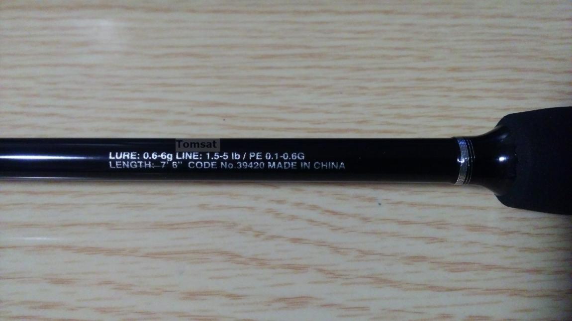 Коротко из заявленного: вершинка - Softube Top, 86,0% карбона, вес - 75г. Диаметр комля 10 мм, вершинки 1,2мм. Вся фурнитура Fuji Kogyo Co., Ltd. Тюльпан типа F, противозахлёстный. Кольца длинноногие 4шт(вроде КR Concept). Раннингов 4шт. Тюльпан и три крайних к вершинке раннинга, как приходиться у Shimano на тубулярках, с серебристой обмоткой. Редкое соединение колен put-in(верхнее колено вставляется в нижнее), впрочем, посадка очень плотная. Есть усиление стыка на нижнем колене и оно залакировано(то ли наложен некий армирующий слой из прозрачного материала и залакирован). Лакировка на бланке снизу до входного кольца, далее - "голый" бланк(кроме стыка.). Всё установлено достаточно аккуратно. Катушкодержатель и простой "грибок" бата из ЭВА. Упаковка - "всенароднолюбимый" шимановский целлулоидный коробок с пакетиками. :)