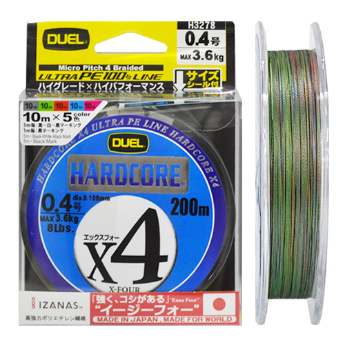 Daiwa0077 да, Hardcore PRO X4 200m 0.11 mm 5Color 3.6 kg #0.4