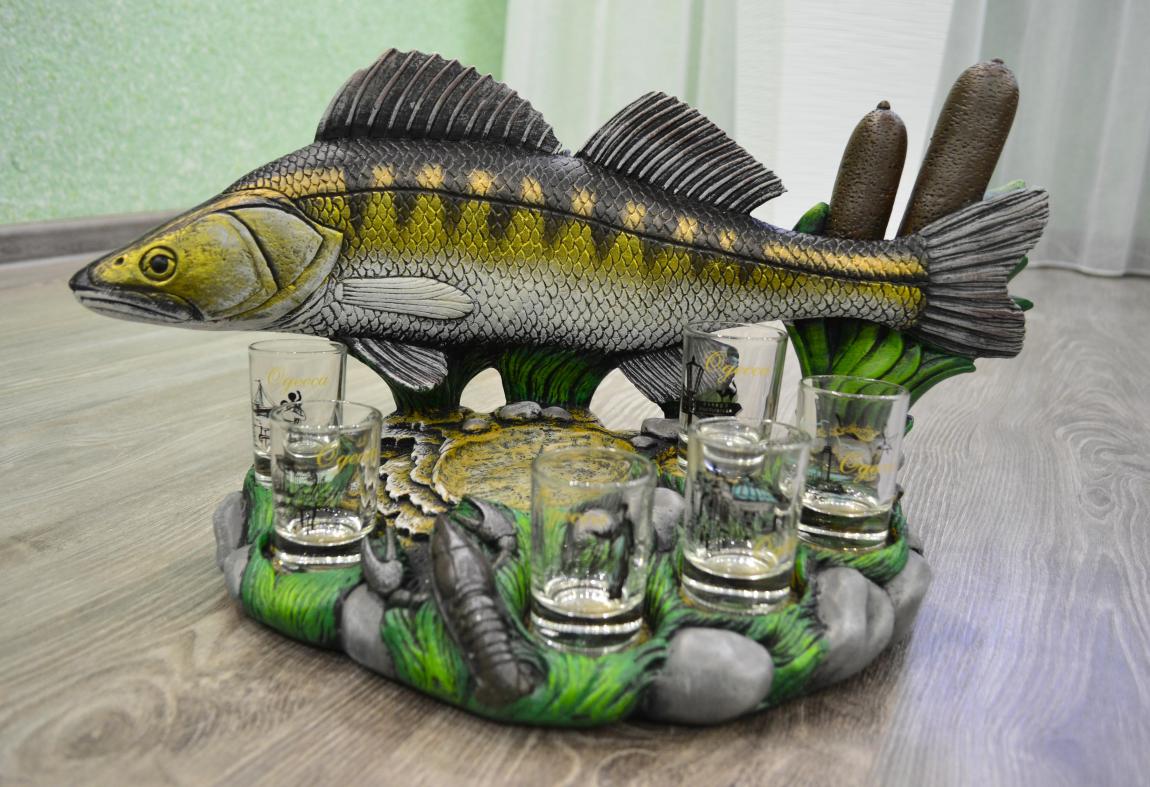 Предлагаю Вашему вниманию сувениры ручной работы, собственного производства. Отлично подойдет на подарок для рыболова. Этот сувенир можно использовать как декор интерьера кухни или гостиной комнаты. Рассчитан на 1 графин и 6 рюмок.