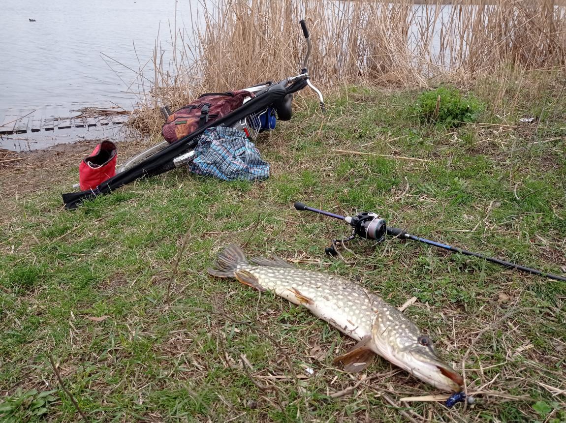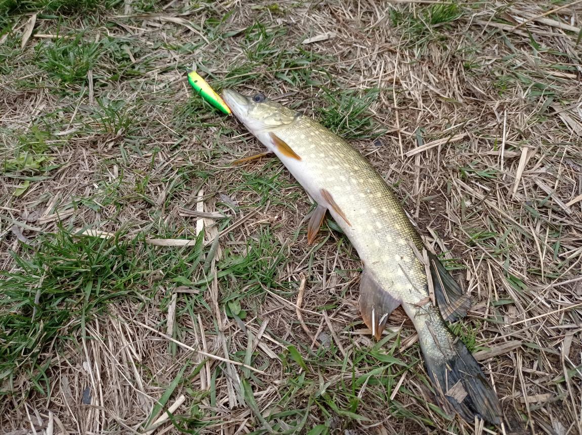После возвращения на эмоциях слил на первом забросе хорошую рыбу... И пытаясь реабилитироваться вогнал приманку в зацеп, решив не церемонится начал выдирать приманку нахрапом и оборвал шнур. Далее, на этой же постановке, после пары поимок, вываживая щучку увидел, что она идет с остатком моего "обрыва". Ухватив шнур, принял рыбу и спокойно (без эмоций) извлёк из зацепа свою оторваную приманку... Прикольно!