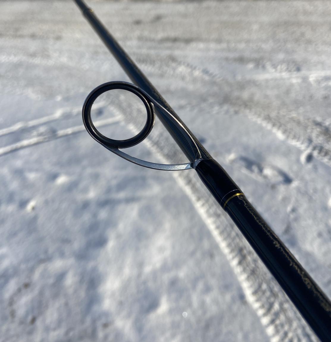 К Фурнитуре вопросов вообще нет. Держатель - держит, длинный и удобный! А кольца - как кольца! Хотя нет. Они очень даже. Позволяют рыбачить в лёгкий минус. Спустя время лёд всё равно появляется, но они реально позволяют ловить при минусовых температурах. Не такие мелкие как на всех моих палках! Такие кольца ещё были на ХертиРайс ЗандерГейм.