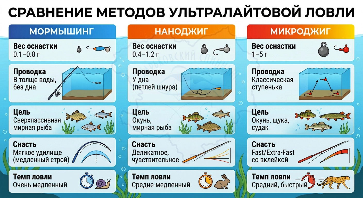 Отличия между мормышингом, наноджигом и микроджигом