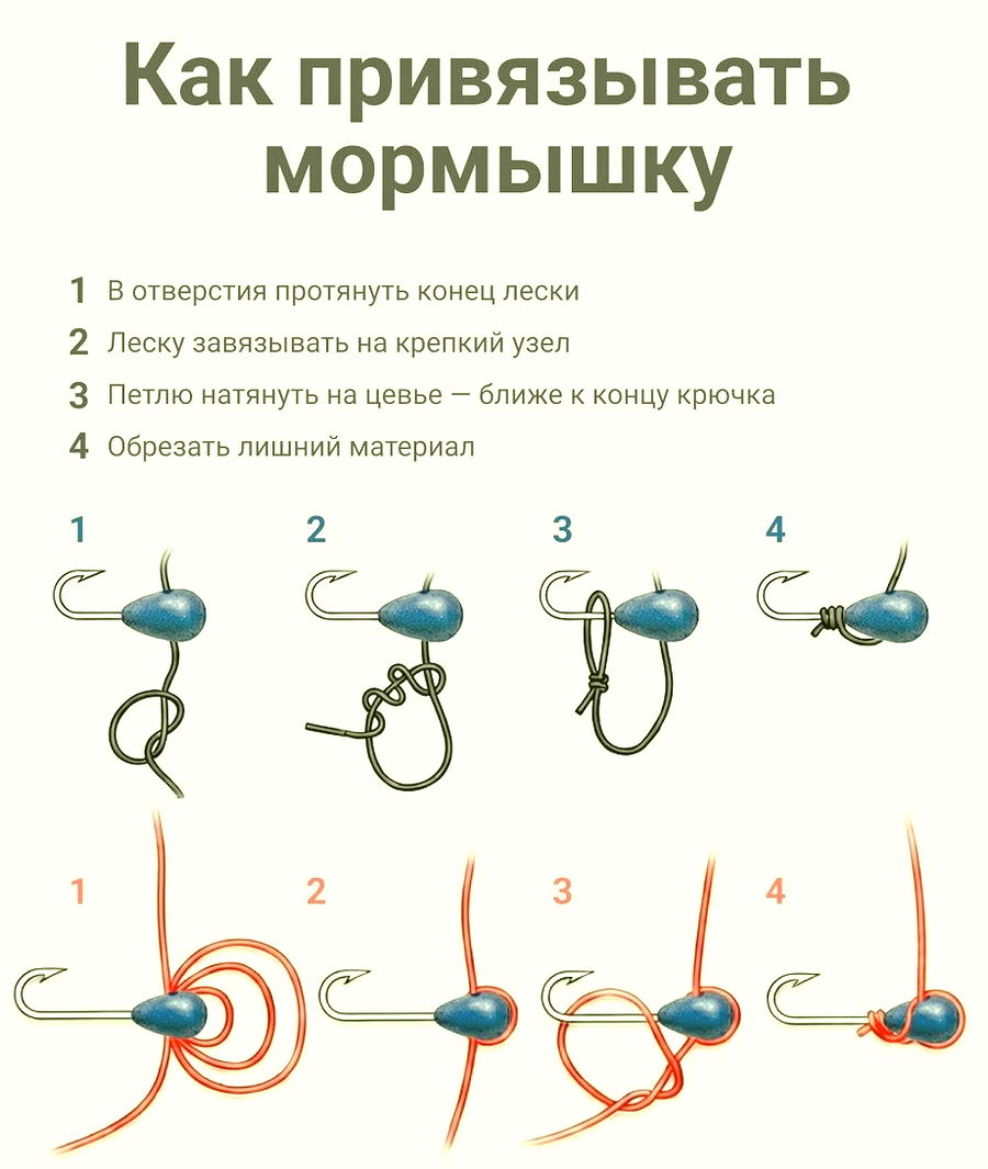 • Не используйте застёжки — мормышка вяжется напрямую