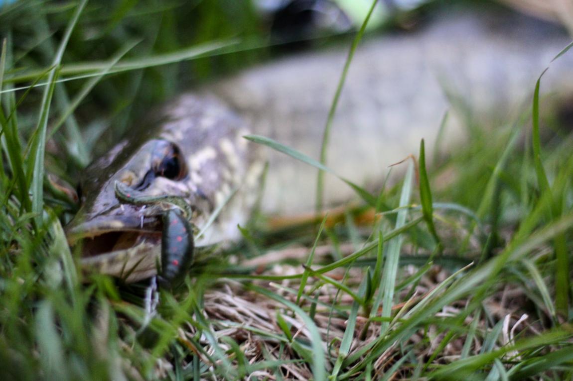На пути замечательной рыбалки не стал даже ветер, который успел уже разгуляться, подняв волну на воде. Даже фотографировать забываю, просто наслаждаюсь процессом ловли. Только в голове промелькнула мысль: "такая мягкая приманка, а после стольких рыб держится молодцом", как произошла неприятность, очередная щука, на вываживании, срезает клешни SL-Remix ... Рассчитывая на активный клев, ставлю другие силиконы, которые, почему-то не давали результата, но и время, отведенное на утреннюю рыбалку, исчерпалось. Начал моросить дождь, ветер менять направления, то совершенно затухая, то мощными порывами сгибая траву.