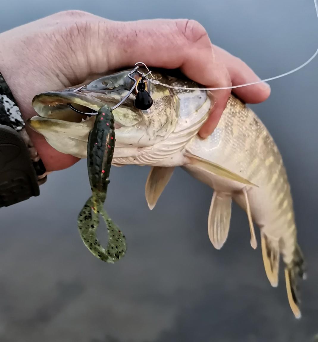 На том азарте, и ограничен временем, я не меняю приманку от BaitBreath, получая регулярные поклевки, как щуки, так и окуня, на удивительного рака SL-Remix.